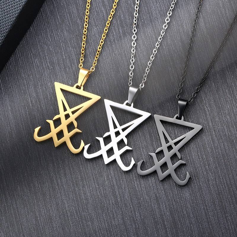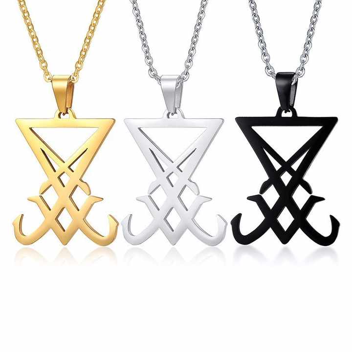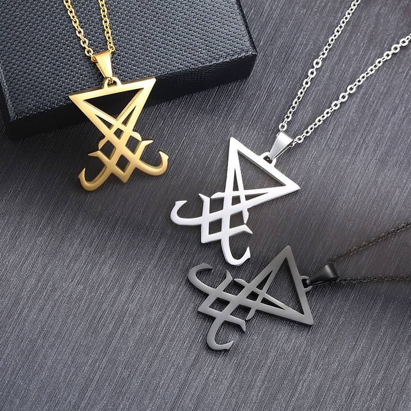 Gioielli da Uomo con Sigillo di Lucifero e Satana, Pendente Gotico Misterioso Esoterico Pagano in Acciaio Inossidabile Placcato Oro 18k Impermeabile