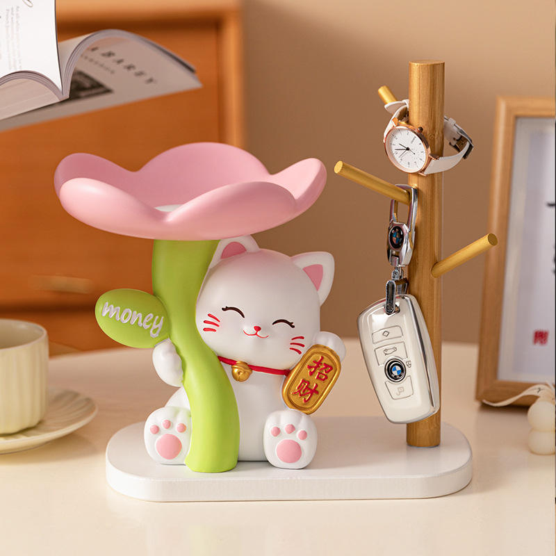 Lucky Cherry Blossom Cat Decor - Auspicious Home Storage Gift - Charming Study & Office Desk Ornament