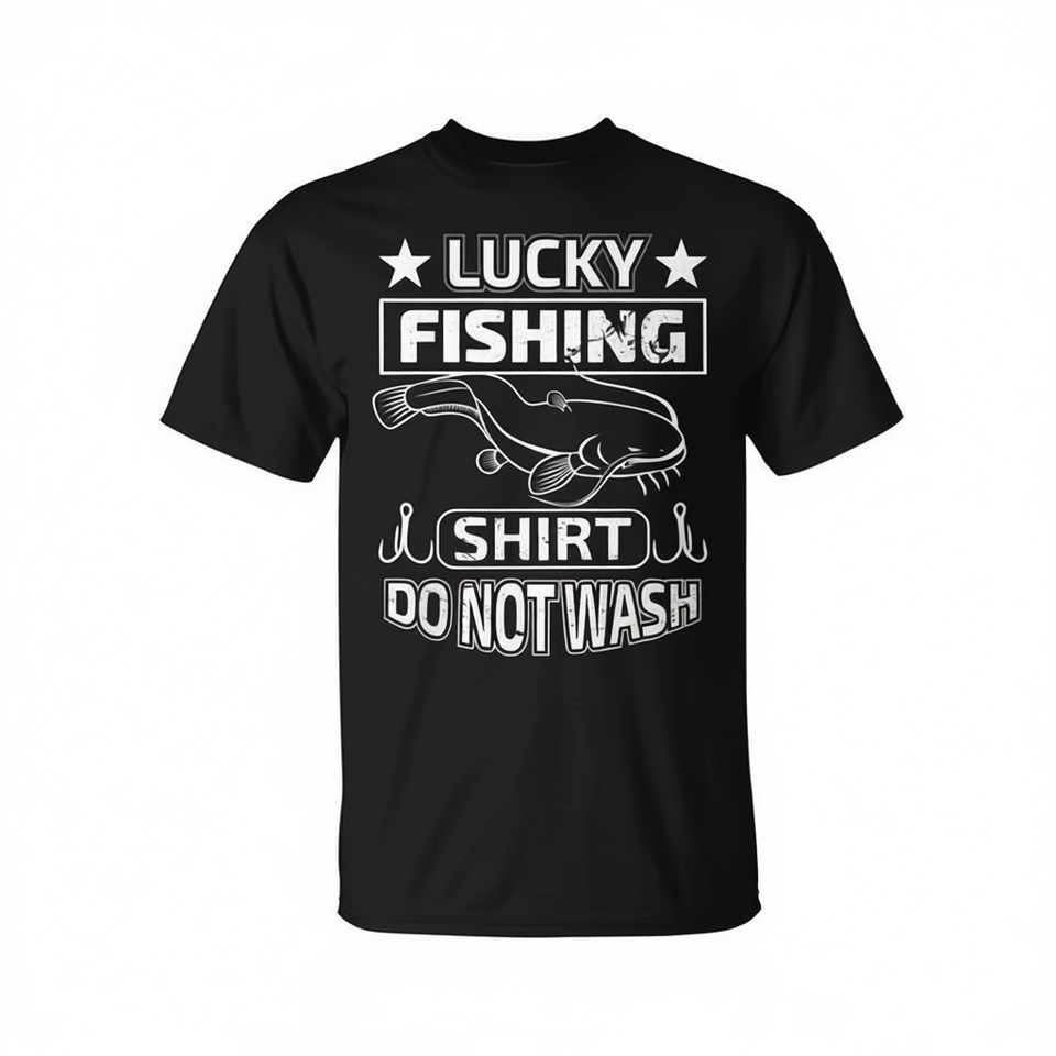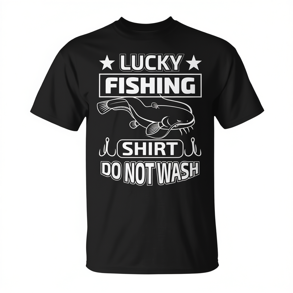 Maglietta da Pesca Lucky con Design Pesce Gatto, Manica Corta, Unisex, Girocollo, per Adulti, Sport e Giochi, Stampa Serigrafica