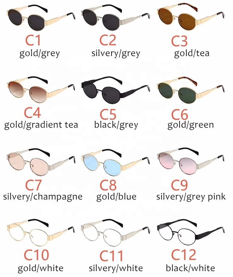 Lucky Hot Selling Fashion Vintage Gold Oval Metal Frame Sun Glasses Men Women Retro Shades Custom LOGO Designer Brand Sunglasses