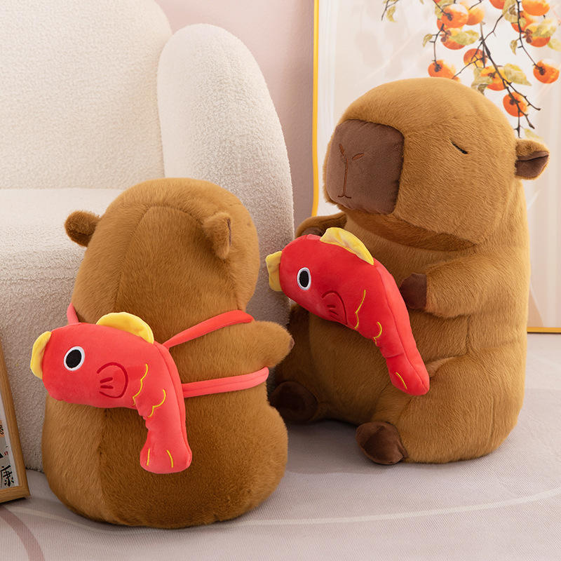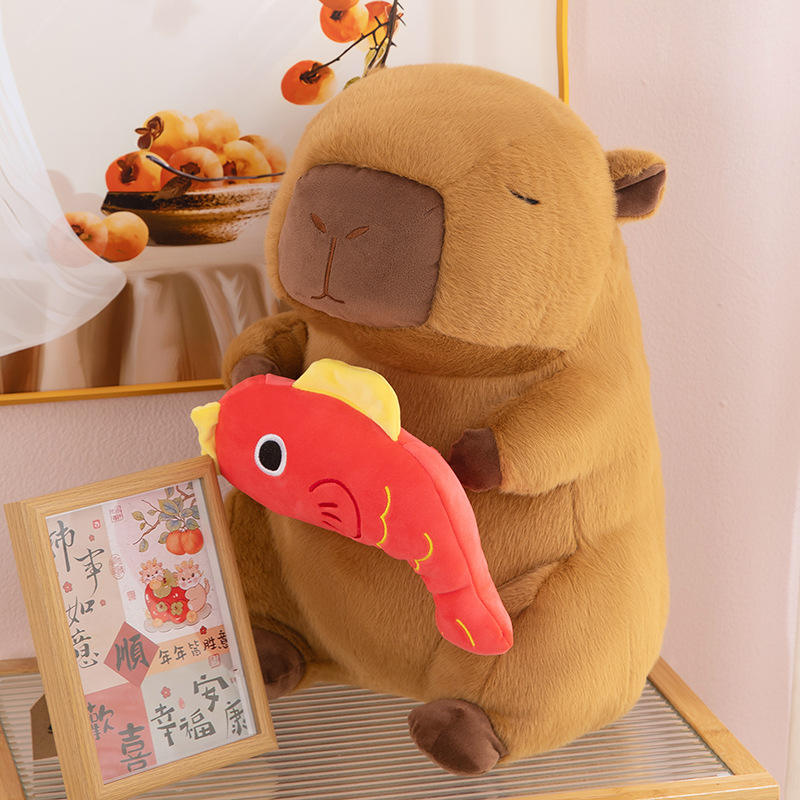 Peluche Lucky Koi Capybara, Morbido Pupazzo Animale Imbottito, Simpatico Cuscino Kawaii a Forma di Cartone Animato, Regalo di Compleanno per Bambini, Adulti e Amici