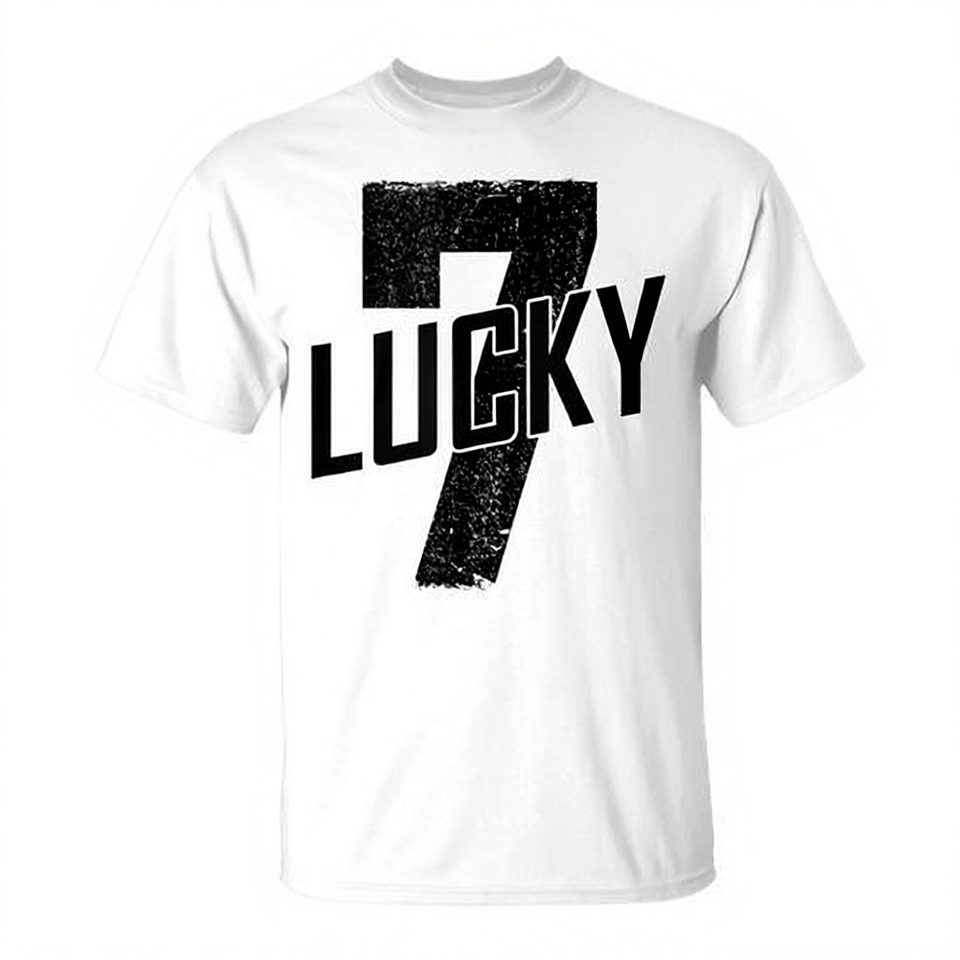 T-shirt Lucky Seven Distressed Lucky Number 7, unisex, taglia adulto media, in cotone bianco, promozionale