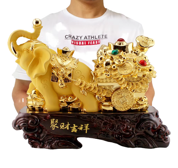 Lucky Town Artistic Elephant Ornament Resin Crafts House Model for Living Room & Office Business Gift