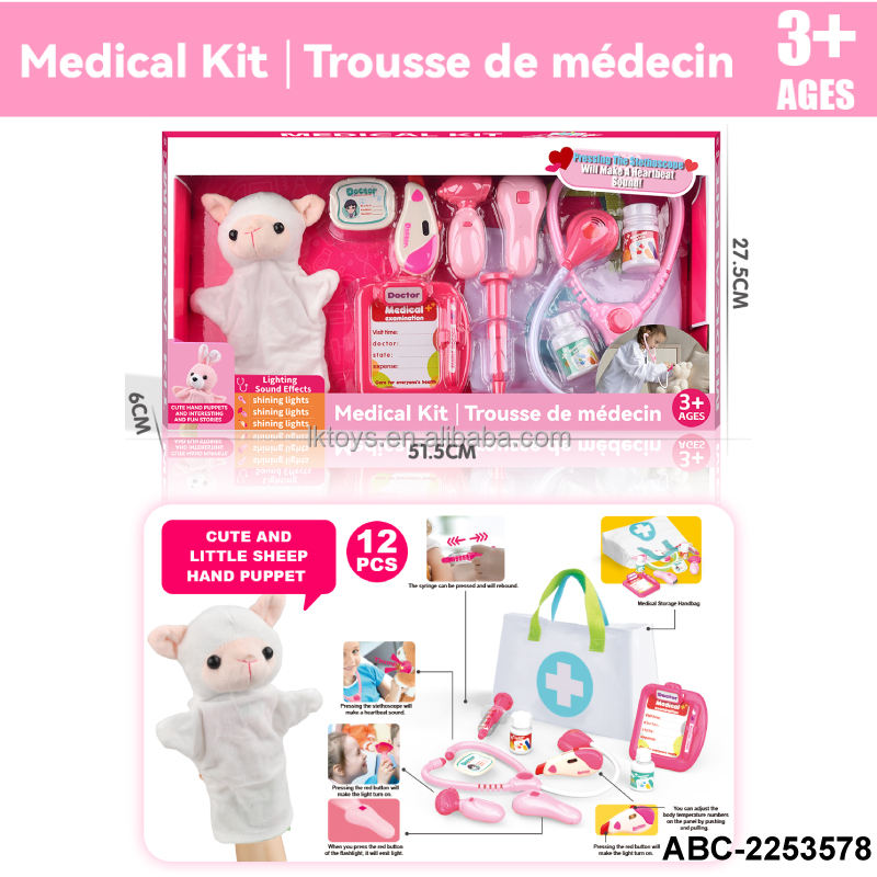 Set di marionette per dottori giocattoli fortunati con custodia in tessuto giocattolo medico elettrificato con luci e batteria inclusi