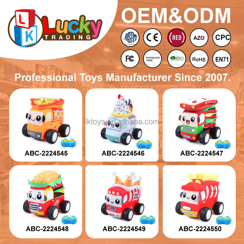 Lucky Toys OEM Customizable 2.4G RC Free Go Shake Function French Fries Food Car Handmade Cute Cartoon Stuffed Plush