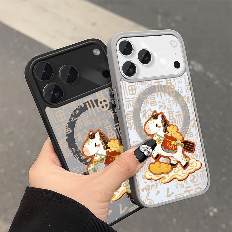 Lucky horse style Phone Case For IPhone 11 To 17 Pro Max Soft TPU White Flower Design Unisex Case