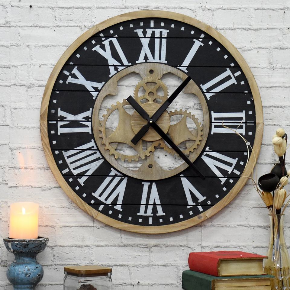 Nome del prodotto:Struttura in legno Shiplap ingranaggi grande fattoria orologio da parete in legno