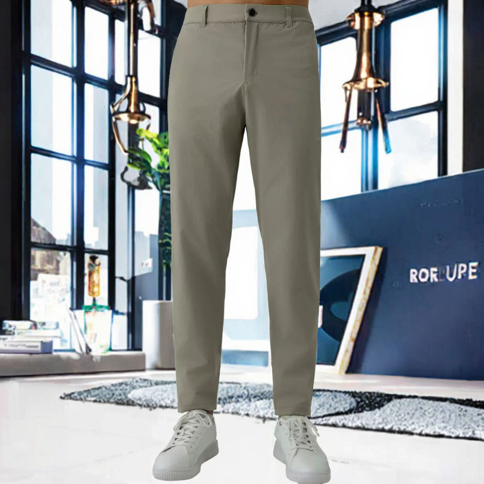Lulu Men's Slim Fit Four-Way Stretch Business Trousers Casual Straight Pattern Lightweight Mid Waist Plain Dyed Flat Worsted