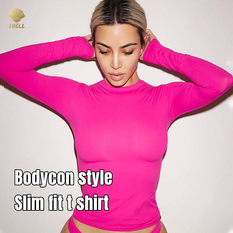 Luluxixiyaya Classic Body Fit Long Sleeve Underwear Brush Cotton Black Color Custom Women Round Neck T Shirt