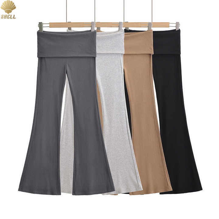 Pantaloni a Zampa Personalizzati Luluxixiyaya a Vita Media con Pieghe, Lunghezza Intera, Morbidi Leggings a Costine con Arricciatura per Donna, Casual