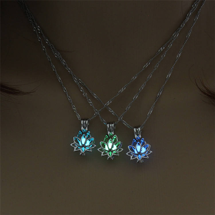 Collana con Ciondolo a Forma di Fiore di Loto Lunare Luminoso che Brilla al Buio per Donne, Gioielli per Yoga, Preghiera e Buddismo