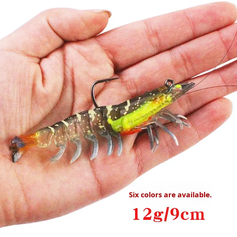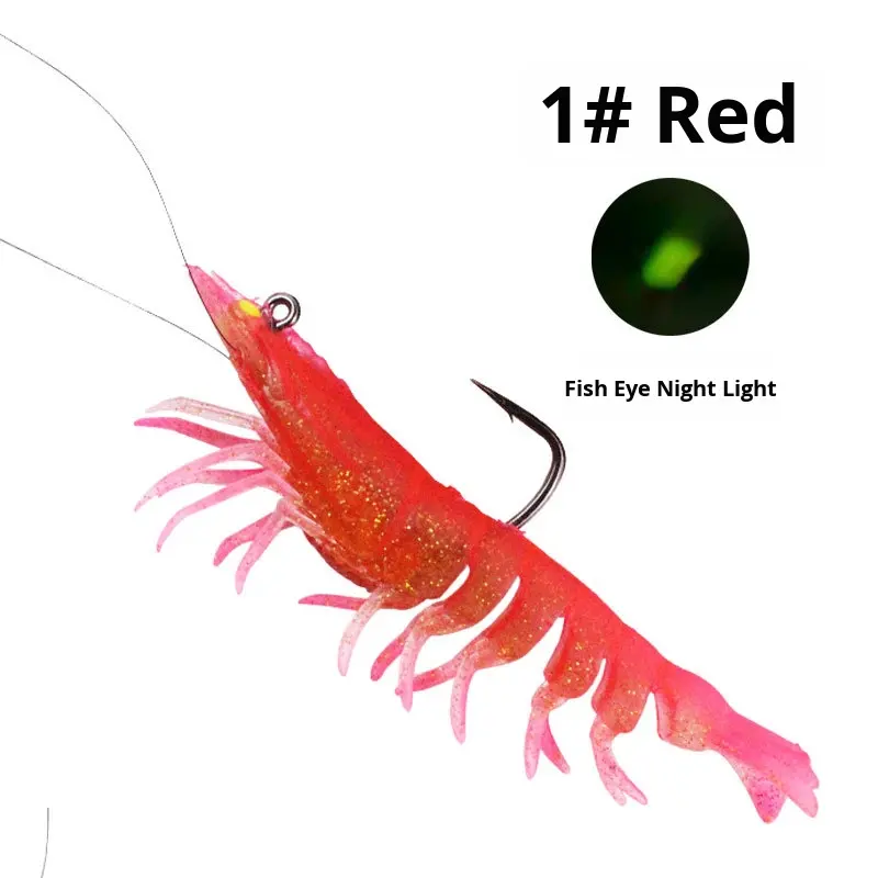 Luminosa esca per pesca in Silicone a forma di gamberetti di grandi dimensioni esca per gamberetti dal corpo morbido con Bigmouth Bass Hook per la pesca notturna