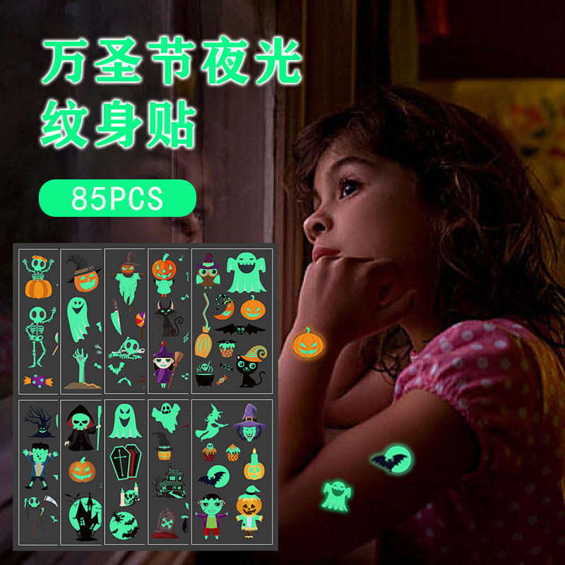 Luminous Night Tattoo Stickers for Children Unicorn Stars Temporary Waterproof Tatto Body Art Kid Halloween Cartoon Fake Tatoo
