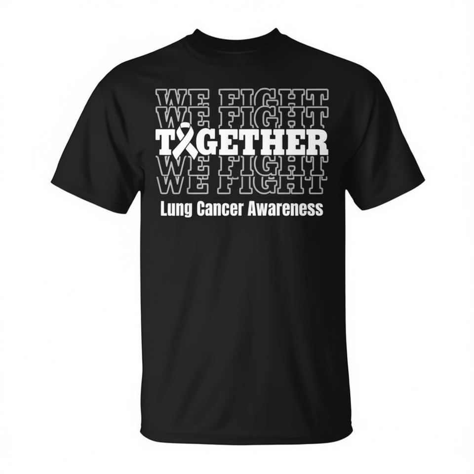 T-shirt per la consapevolezza sul cancro ai polmoni: Combattiamo insieme - Supporto con nastro bianco