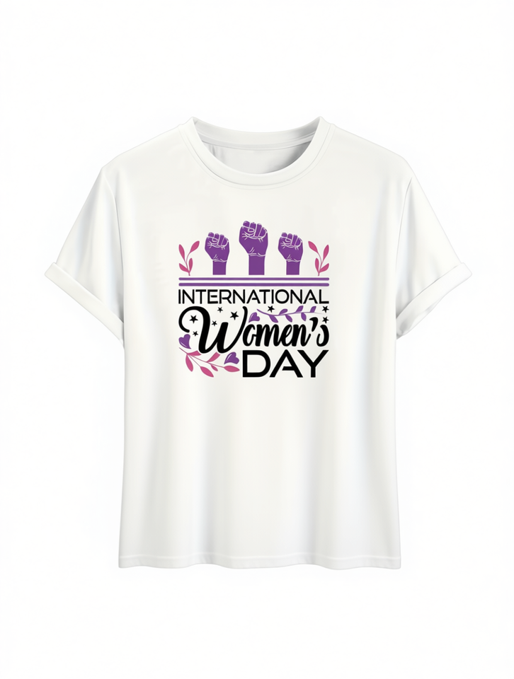 T-shirt da donna Luokeren per la Giornata Internazionale della Donna, girocollo, manica corta, stampata, casual, in tessuto 100% poliestere lavorato a maglia