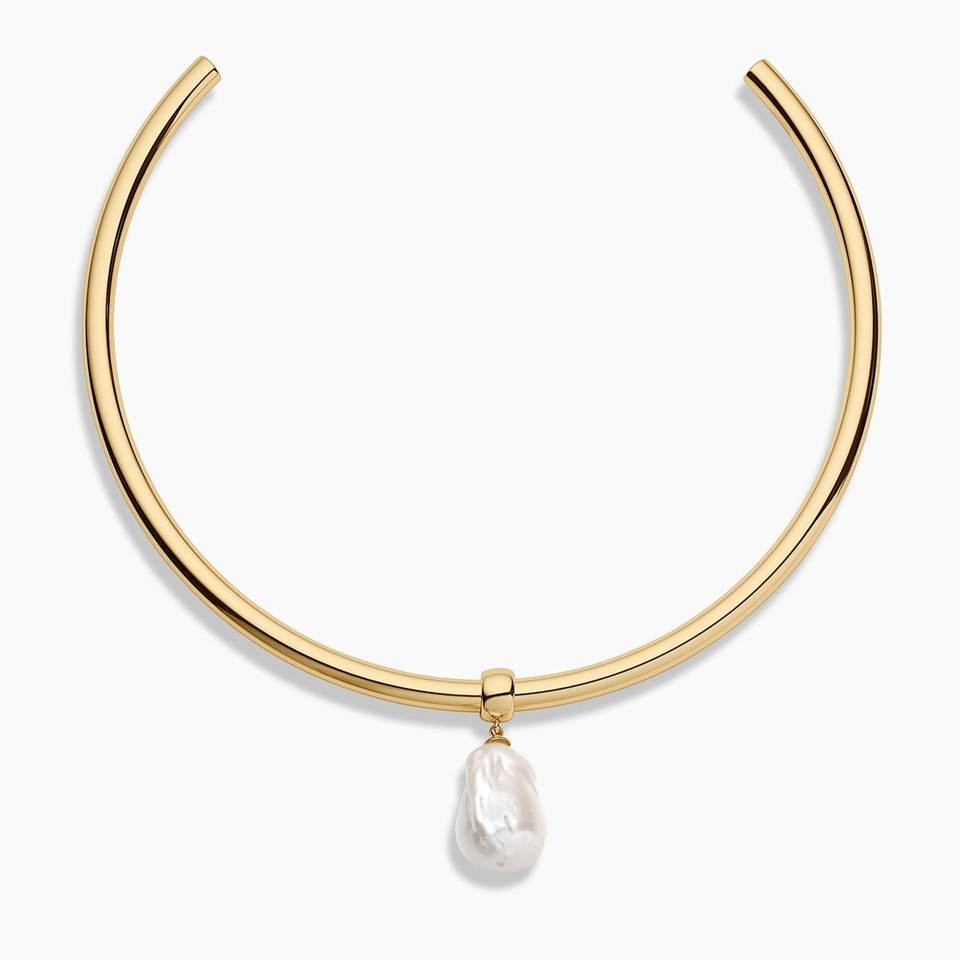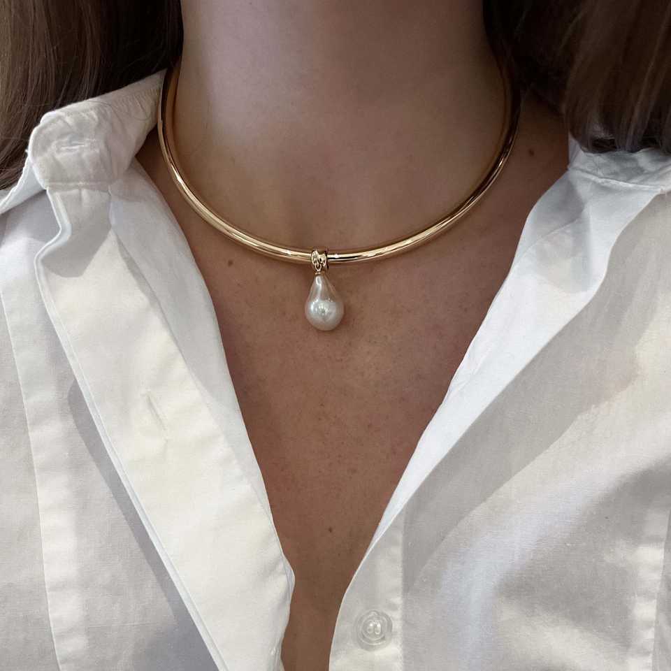 Luoyan Trend Jewelry Thick Circle Choker Necklace Chic Gold Plated Baroque Pearl Pendant Charm Collar Necklace for Women Party