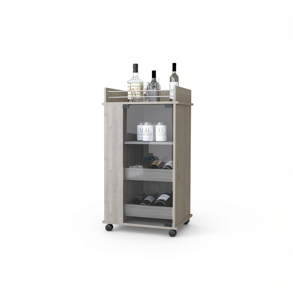 Lusk Bar Cart With Glass Door 2 Bottle Holder Modern Beverage Serving Set Wood Material Casters