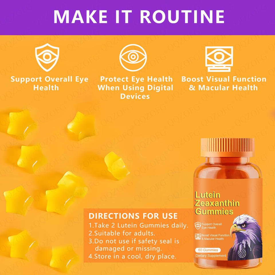Gommose di Luteina e Zeaxantina per la Salute Oculare Quotidiana, con Estratto di Mirtillo, Supporto Luce Blu, a Forma di Stella, Biologiche per Adulti, 60 Pezzi