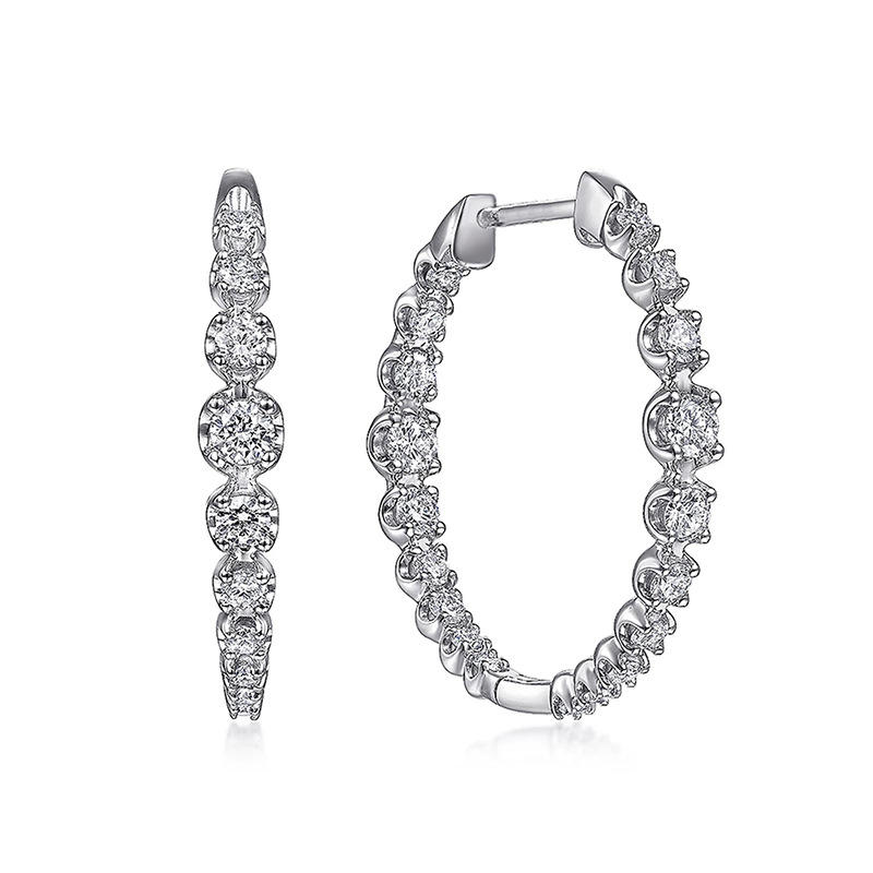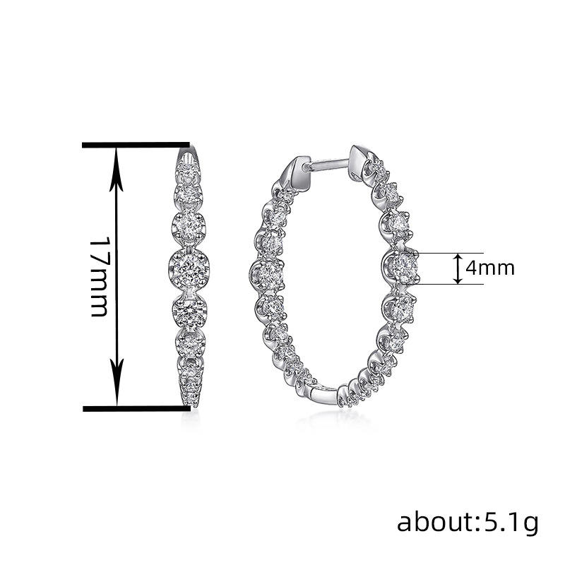 Luxe White Gold Plated 925 Silver Hoop Earrings With Round Crystal Rhinestones Claw Setting Classic Women's Everyday Wear