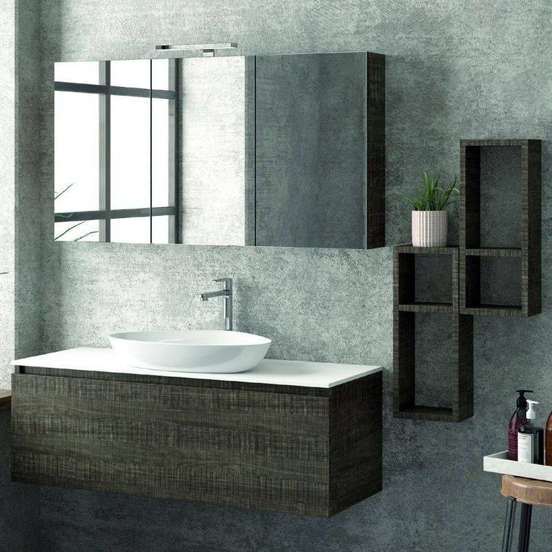 Lussuoso Mobile Bagno Sospeso da 120cm in Legno Massello con Specchio, Due Unità a Parete Kamalu e Lavabo in Ceramica