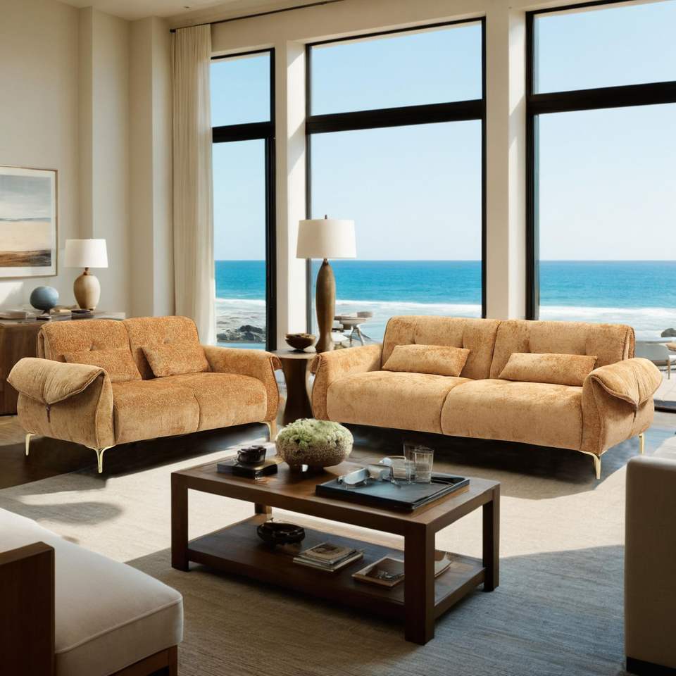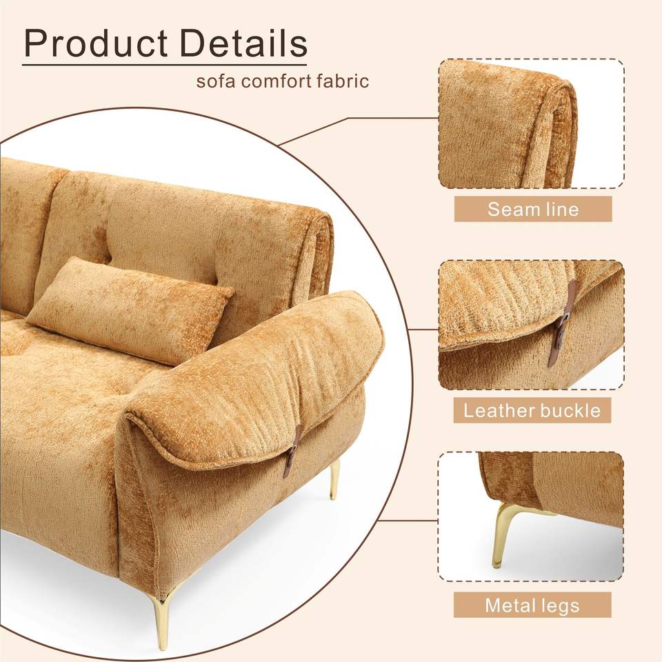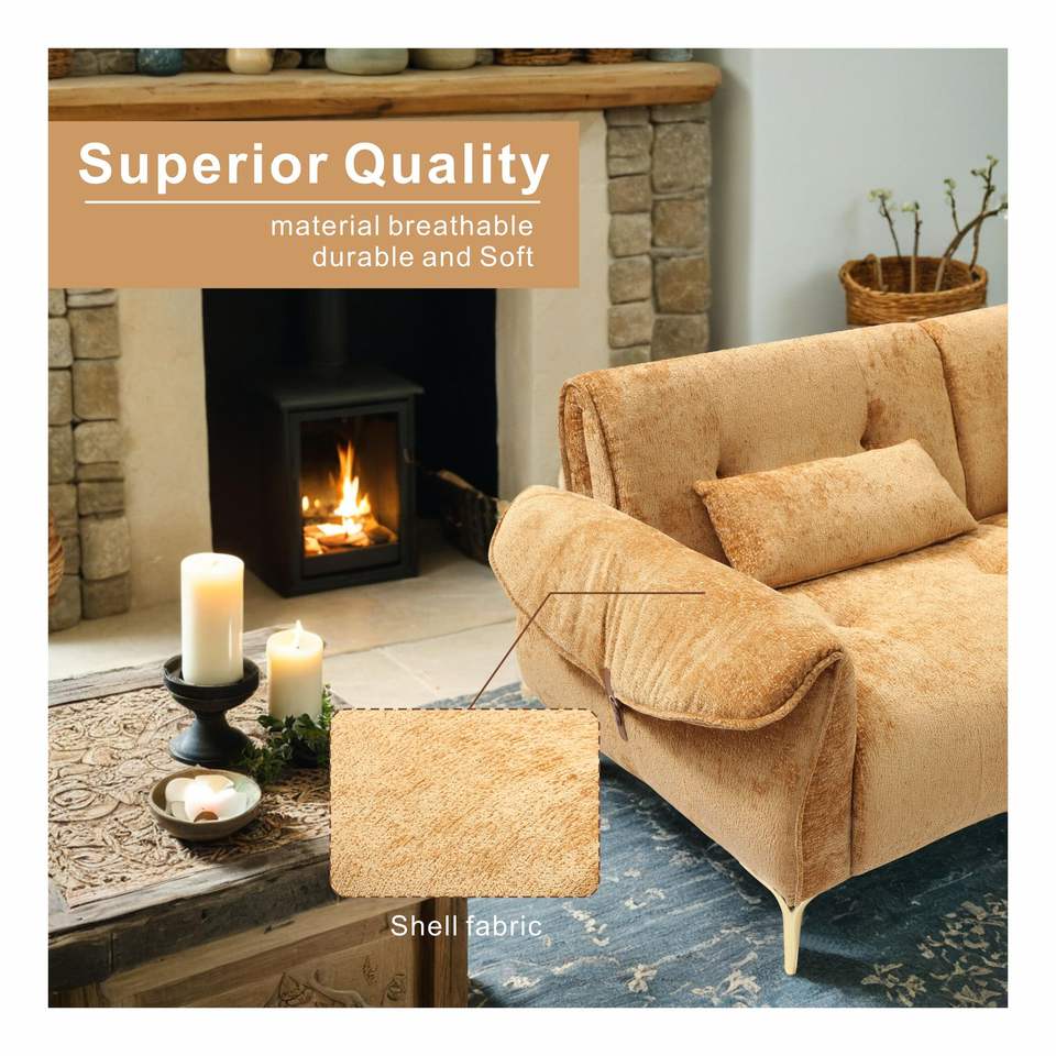 Divano di Lusso a 3 Posti con Cuscini Confortevoli e Gambe Dorate per Soggiorno Modello D0100H5422P