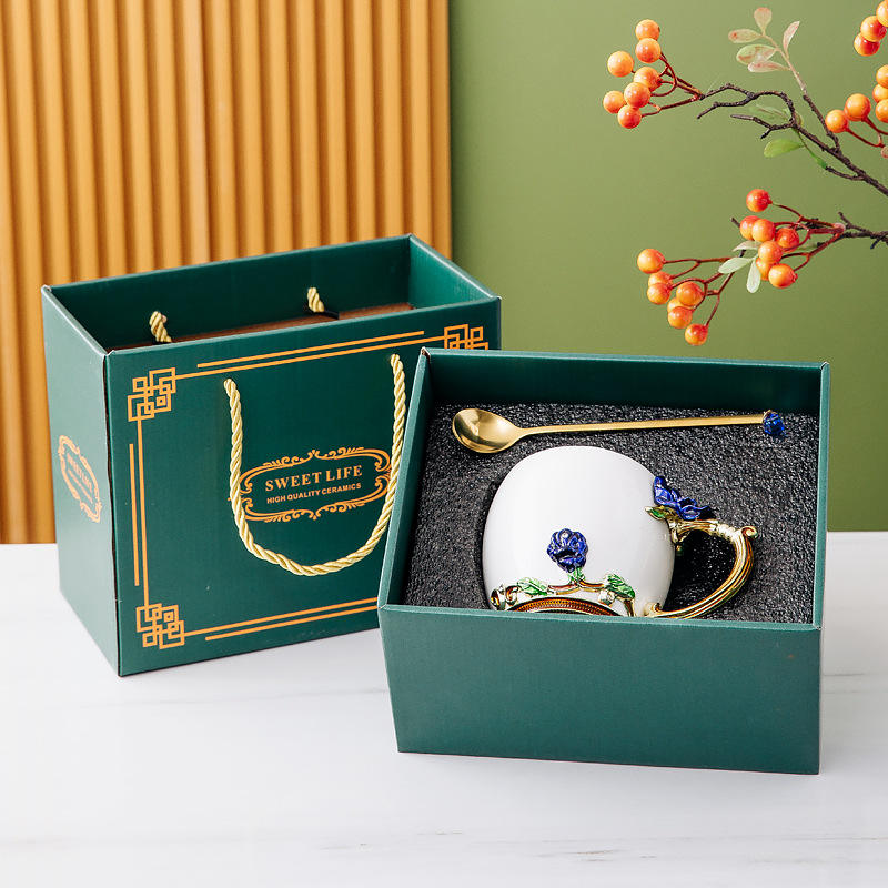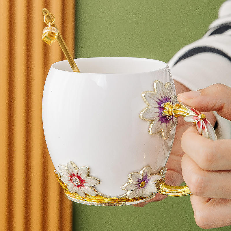 Lussuoso creativo in smalto fatto a mano a forma di fiore margherita rosa bianco ceramica tazza tazza da tè con scatola regalo