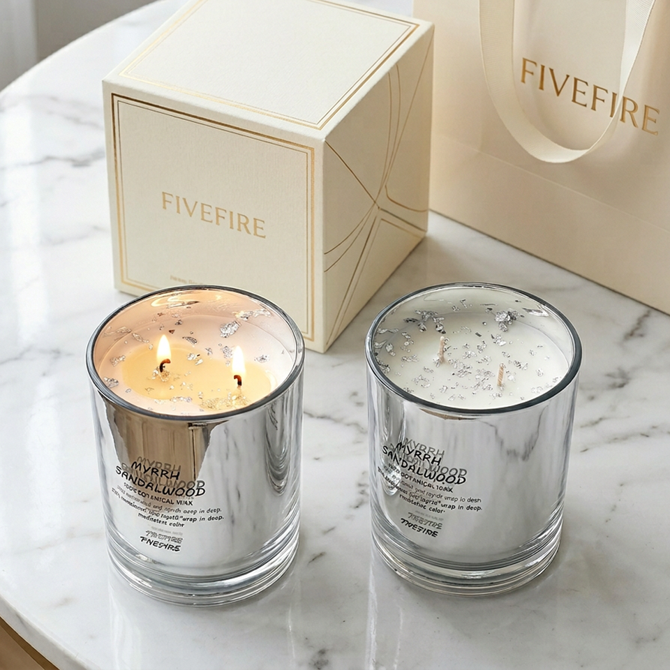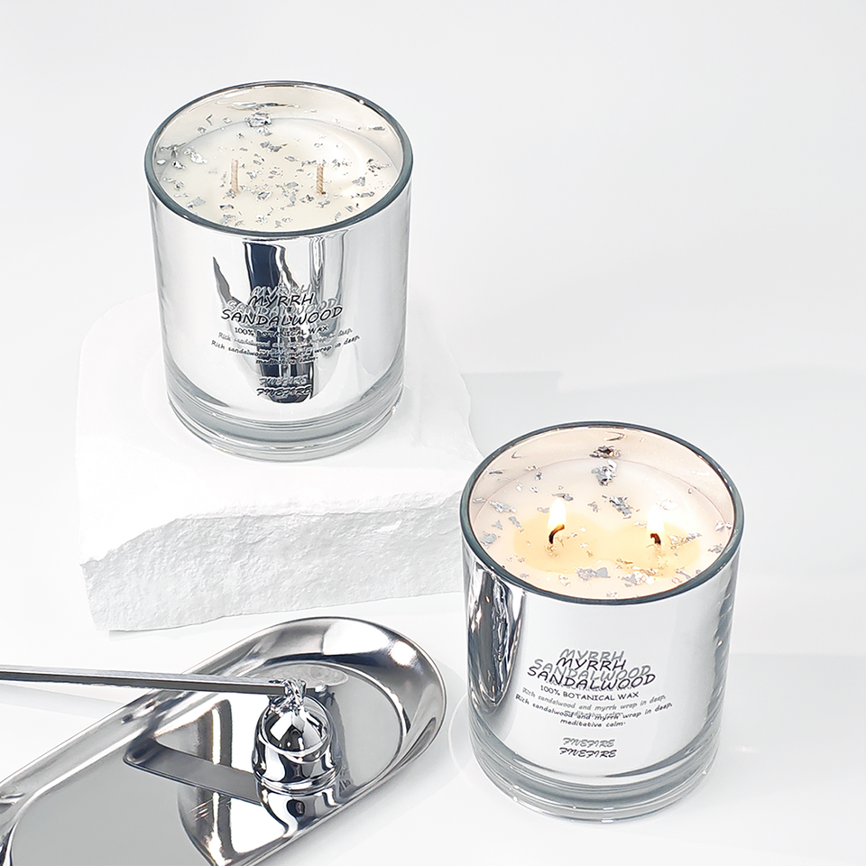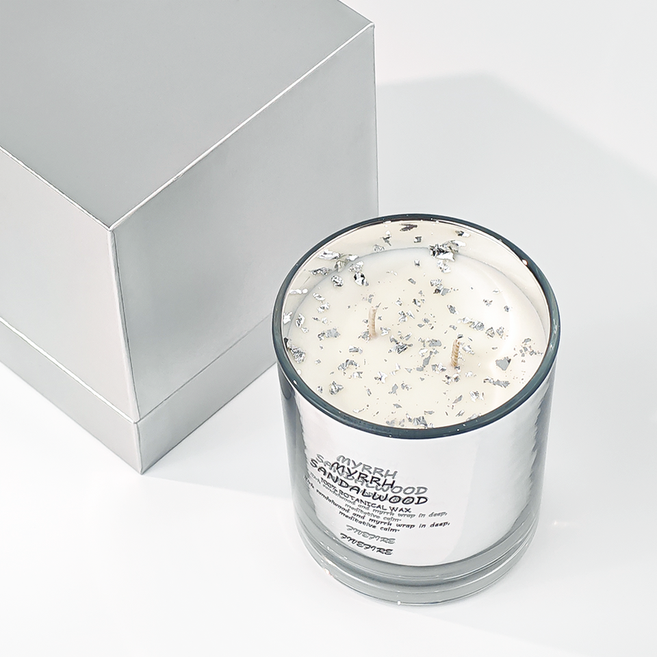 Lussuose candele di vetro con fragranza unica. L'intera candela presenta un logo personale come regalo decorativo.