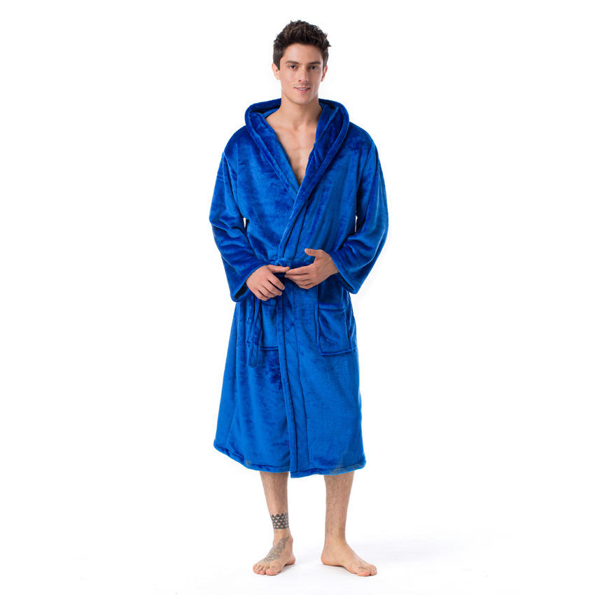 Luxurious Men's Shawl Collar Fleece Bathrobe Spa Robe