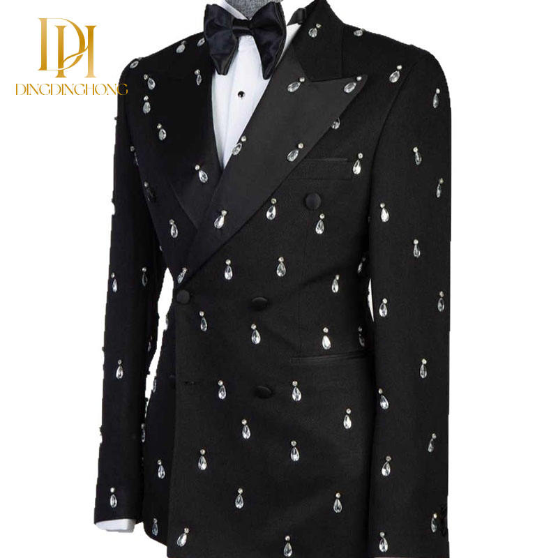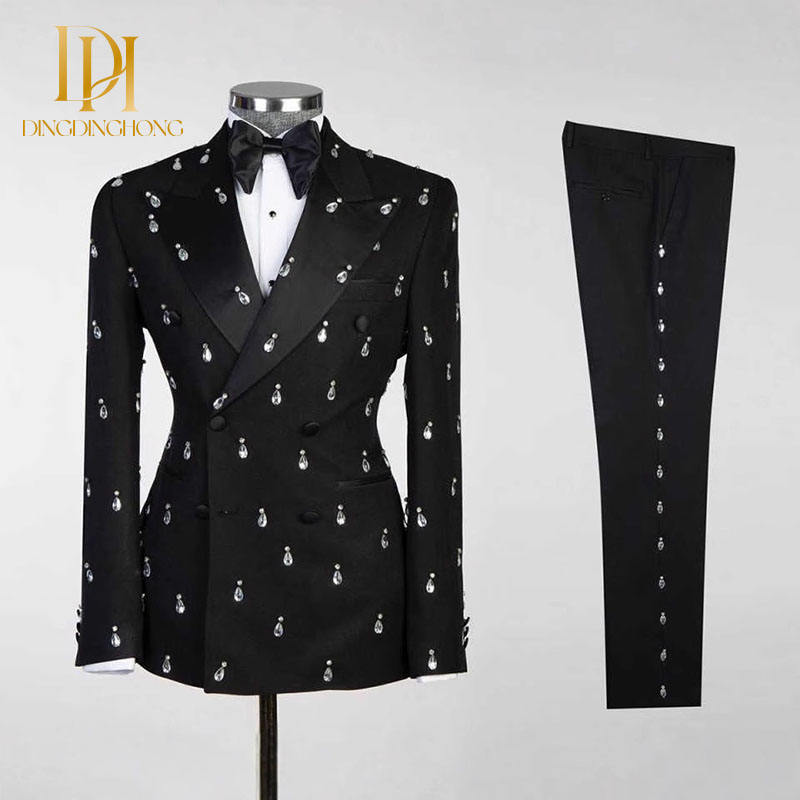 Lussuoso abito da sposa uomo 2 pezzi Set acqua goccia diamante doppio petto per risvolto di punta dello sposo pantaloni per matrimoni estivi