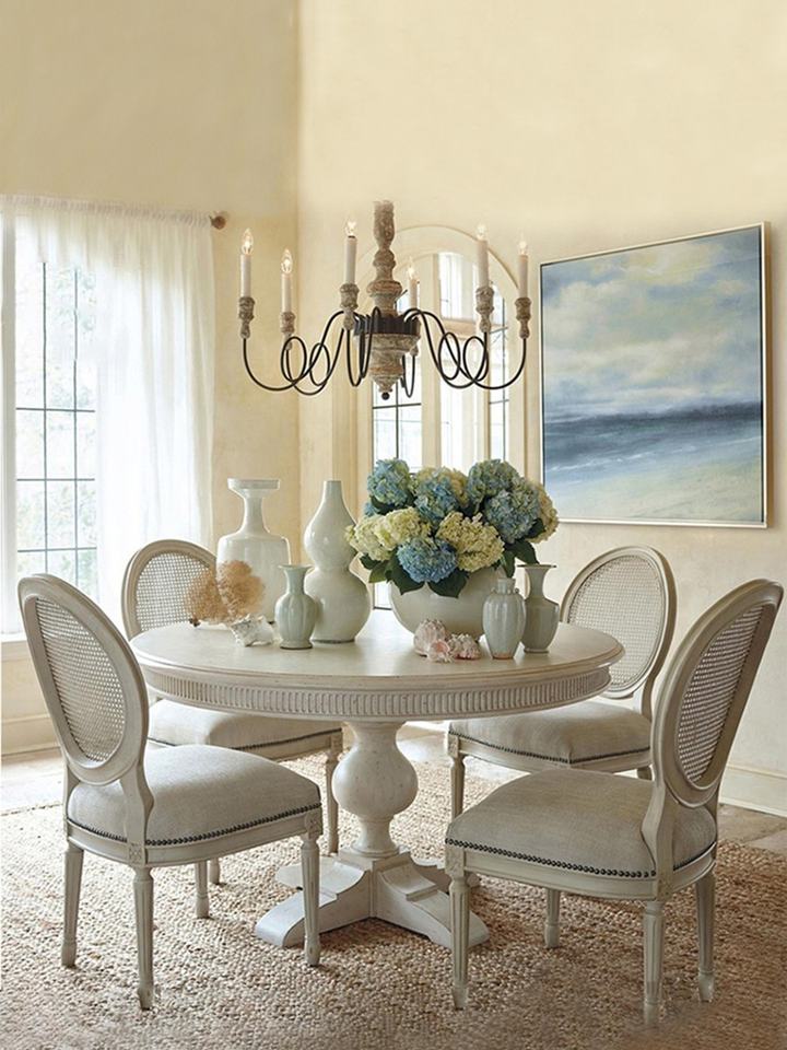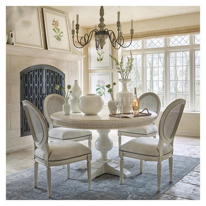 Lussuoso Tavolo da Pranzo in Stile Retrò per 6 Persone in Legno Massello di Quercia Americano Moderno Tradizionale per Cucina e Arredamento Casa
