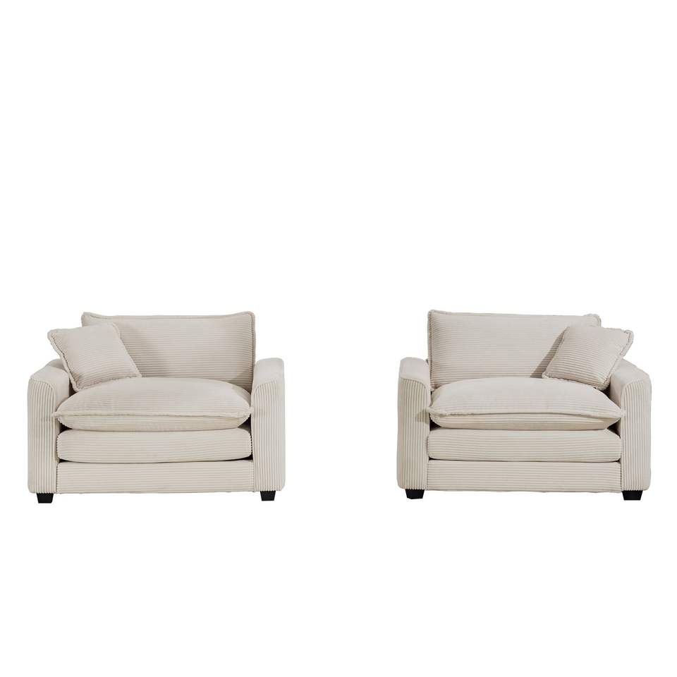 Set di Divani Lussuosi e Sofisticati con Seduta Profonda, Due Poltrone Singole in Tessuto Corduroy Beige Chiaro e Set di Due Poltrone Decorative per Soggiorno