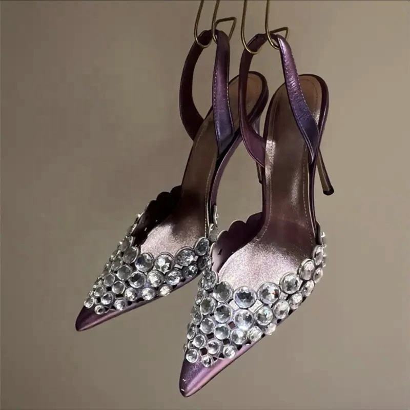 Stili lussuosi da donna grandi strass tacchi alti sandali con tacco a spillo Slingback scarpe estive