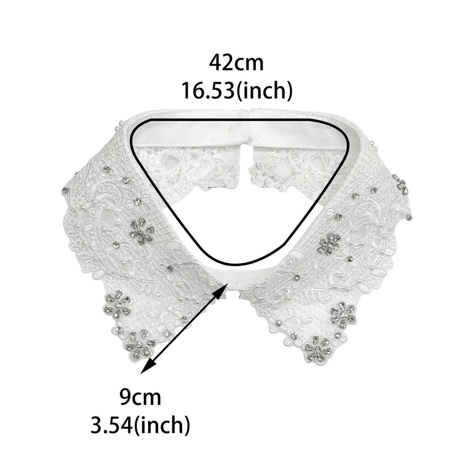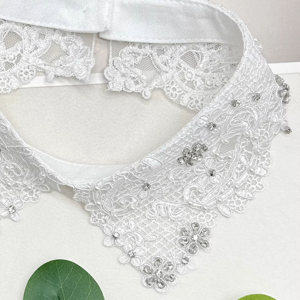 Colletto Finto di Alta Qualità in Fibra di Poliestere Ultra Leggera con Fiori Ricamati e Strass