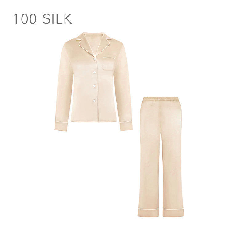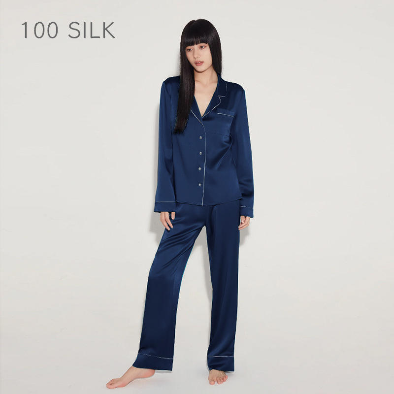 Pigiama Estivo di Lusso in Seta di Alta Qualità per Donna, Maniche Lunghe