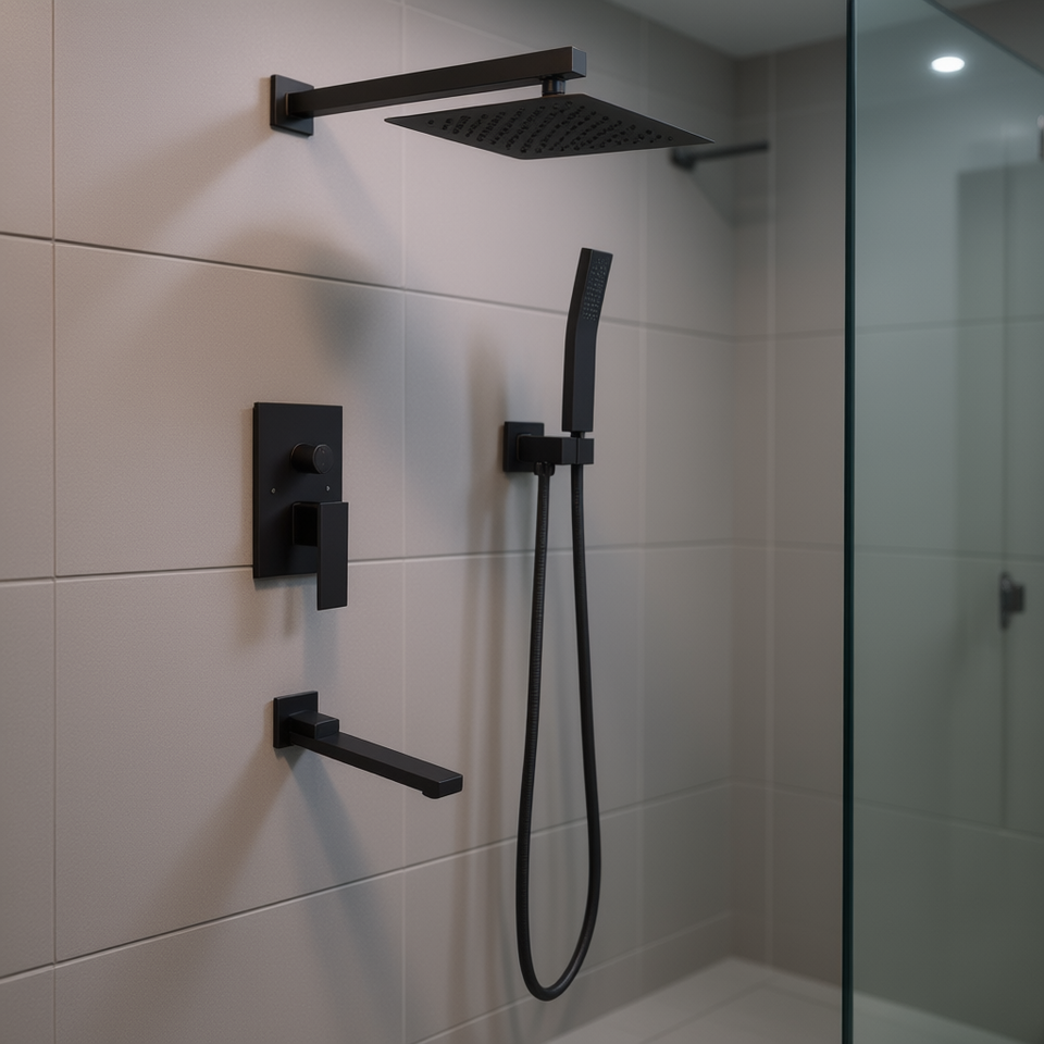 Set doccia di lusso da 10 pollici quadrato, miscelatore a pioggia, soffione doccia in metallo a parete con doccetta per bagni moderni