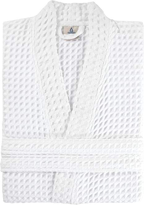Luxury 100% Cotton Waffle Kimono Bathrobe Unisex V-Neck Short Sleeves Knee-Length Quick Dry Breathable Cozy Elegant Leisurewear