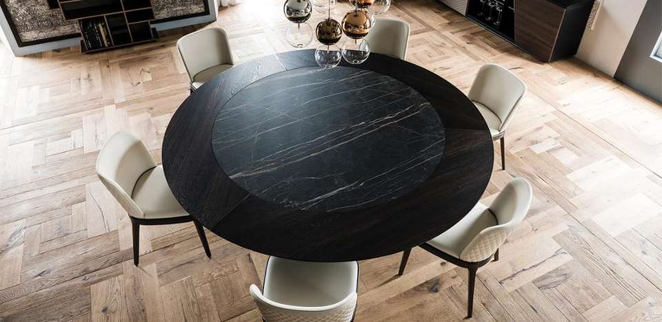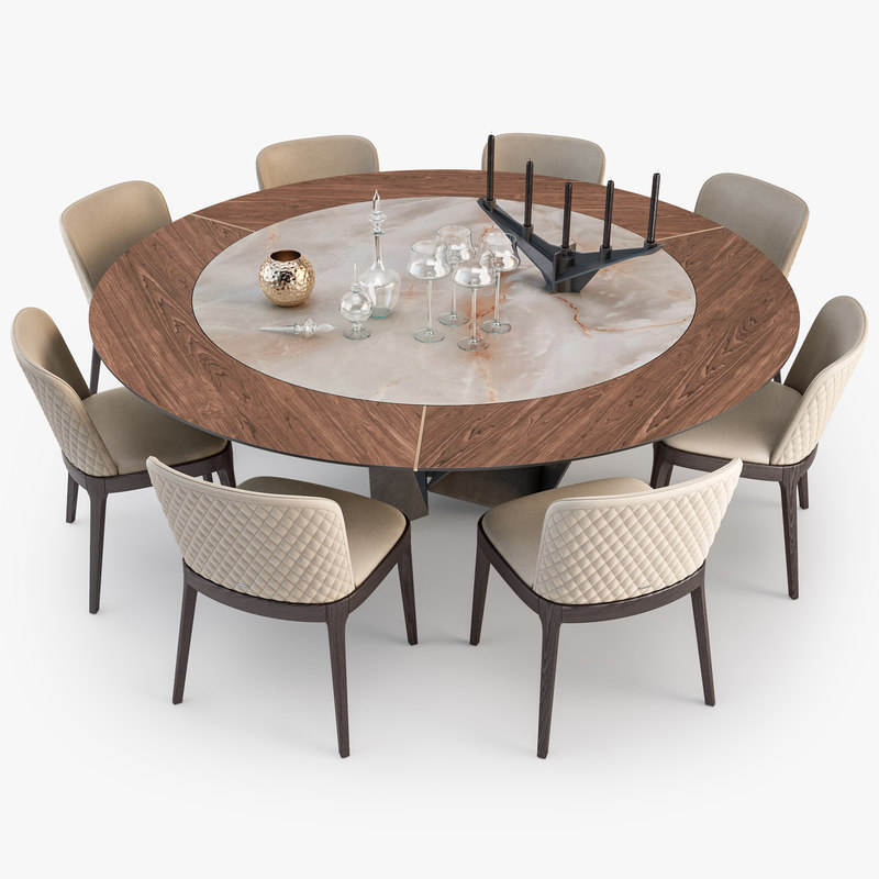 Set Tavolo da Pranzo di Lusso con Tavolo Rotondo in Metallo Design Marmo da 12 Posti