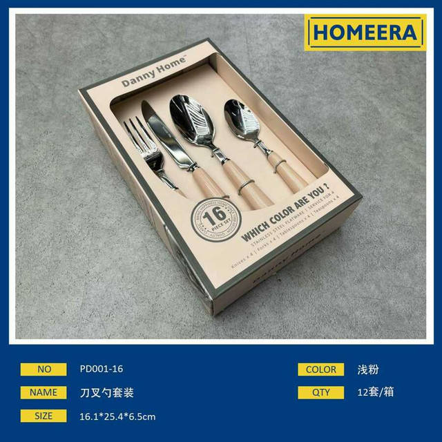 Luxury 16-Piece Ceramic and Stainless Steel Cutlery Set Including Fork Knife Spoon for Holiday Service Window Box Packaging