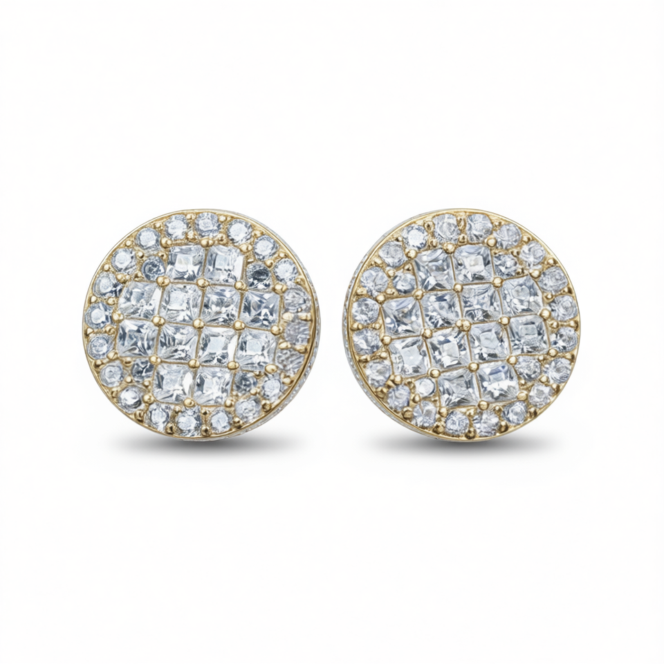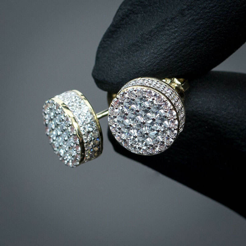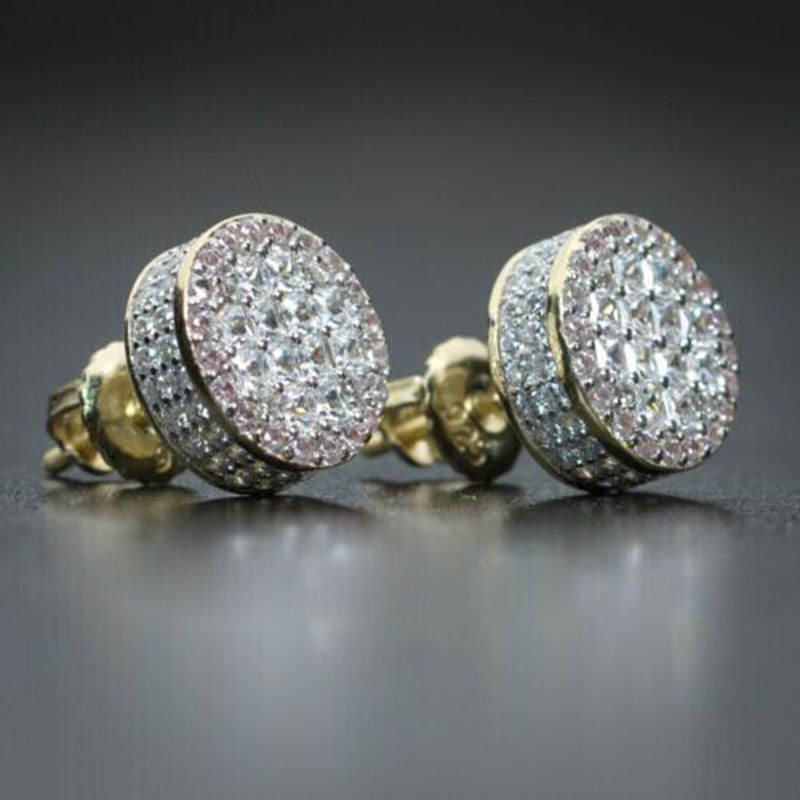 Luxury 18K Solid Gold Diamond Earrings Princess Cut G Color Natural Diamonds Women's Wedding Jewelry Round Stud Design