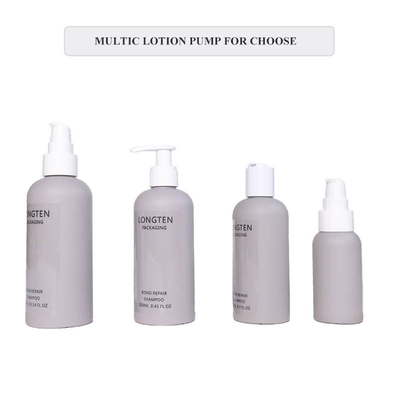 Luxury 300ml 250ml Empty boston Shape Grey HDPE Skincare Packaging Disc Cap Pump Body Wash Soap Lotion Shampoo Plastic Bottle