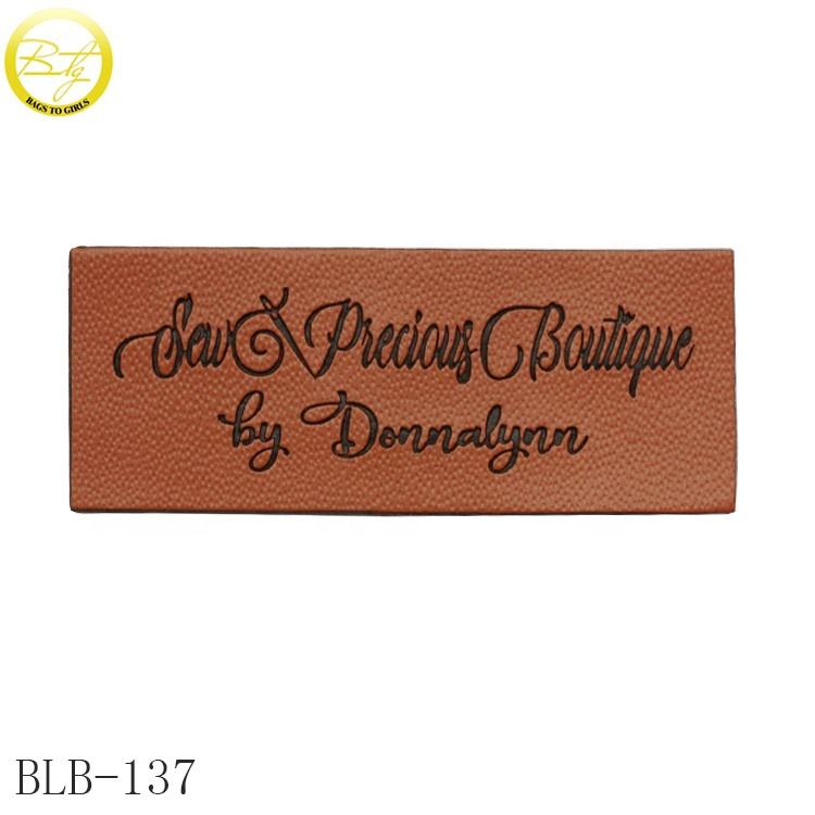 Luxury 3D Flower-shaped PU Leather Tags Printed Name and Lace Decoration for Shoes and Clothes Brown Color Patch OEM Model