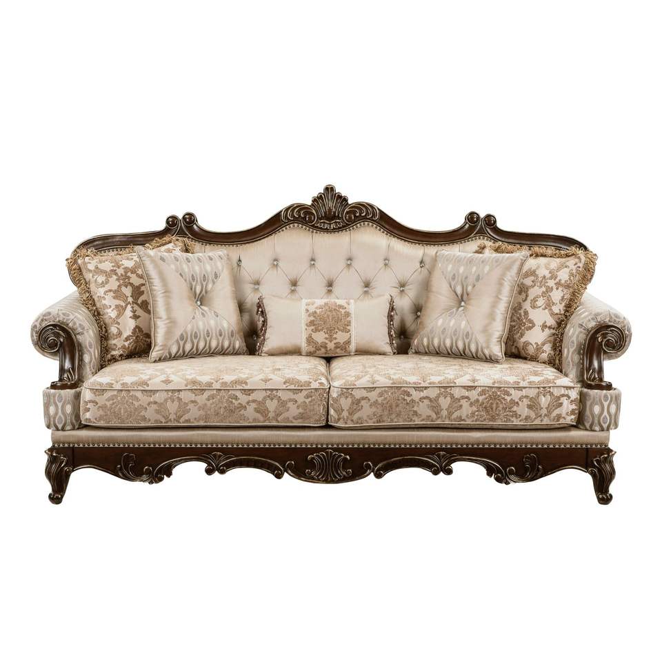 Luxury 3pc Solid Wood Living Room Furniture Formal Traditional Sofa Loveseat Chair in Cherry Finish with Gold Tipping