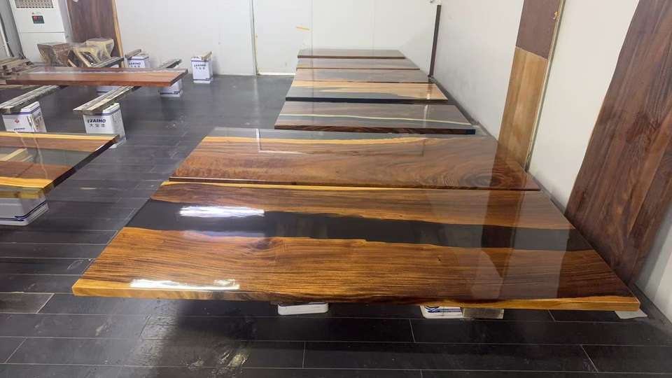 Luxury 4.5cm Thickness Epoxy Resin Table Epoxy Black Live Edge River Resin Agate Coffee Tables with Epoxy Resin and Walunt Wood