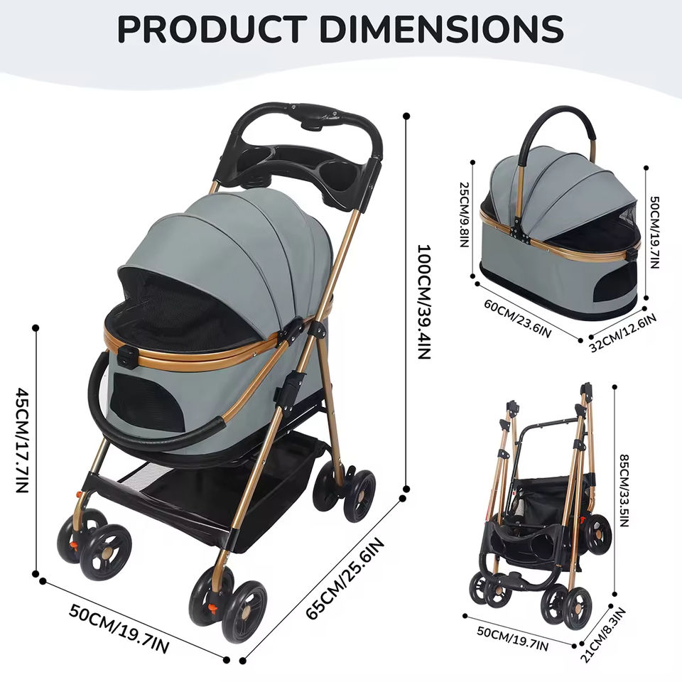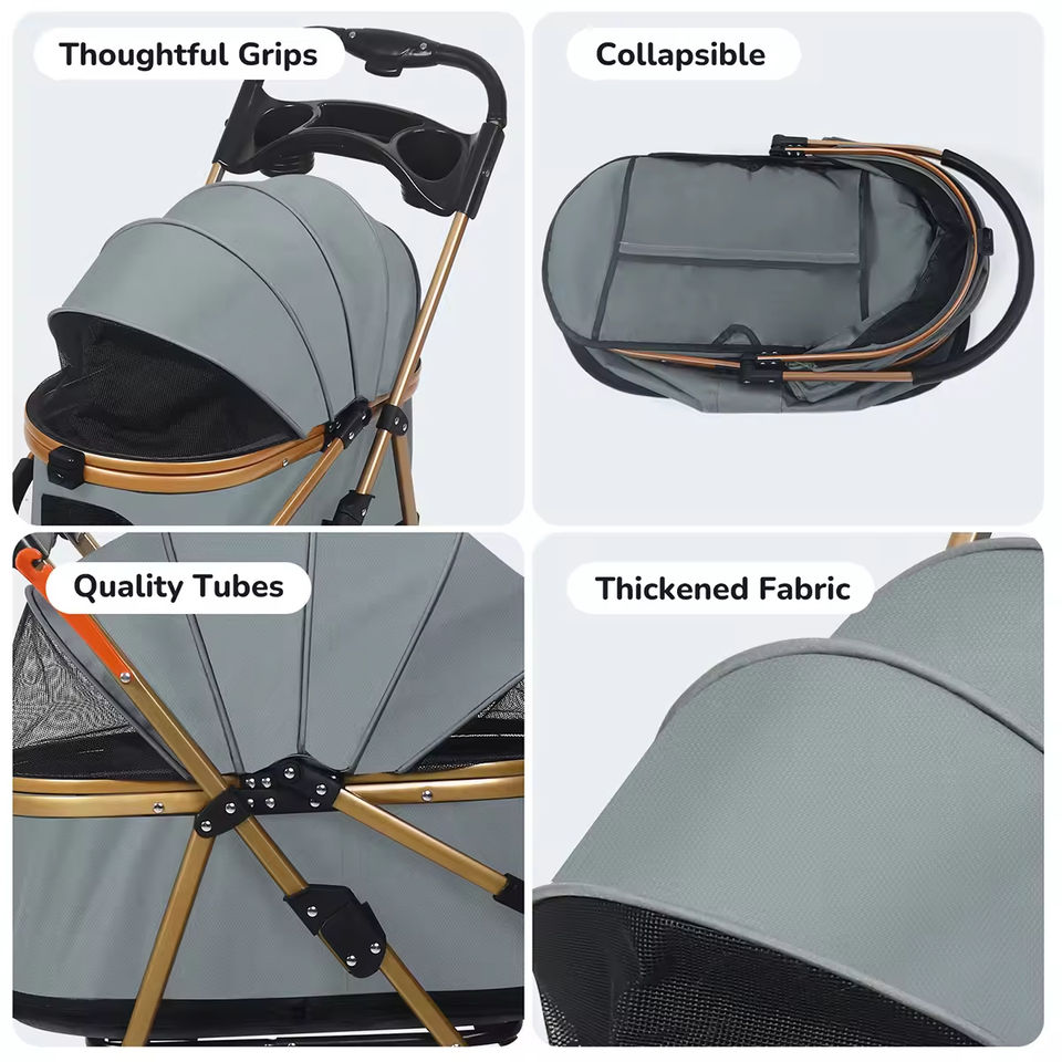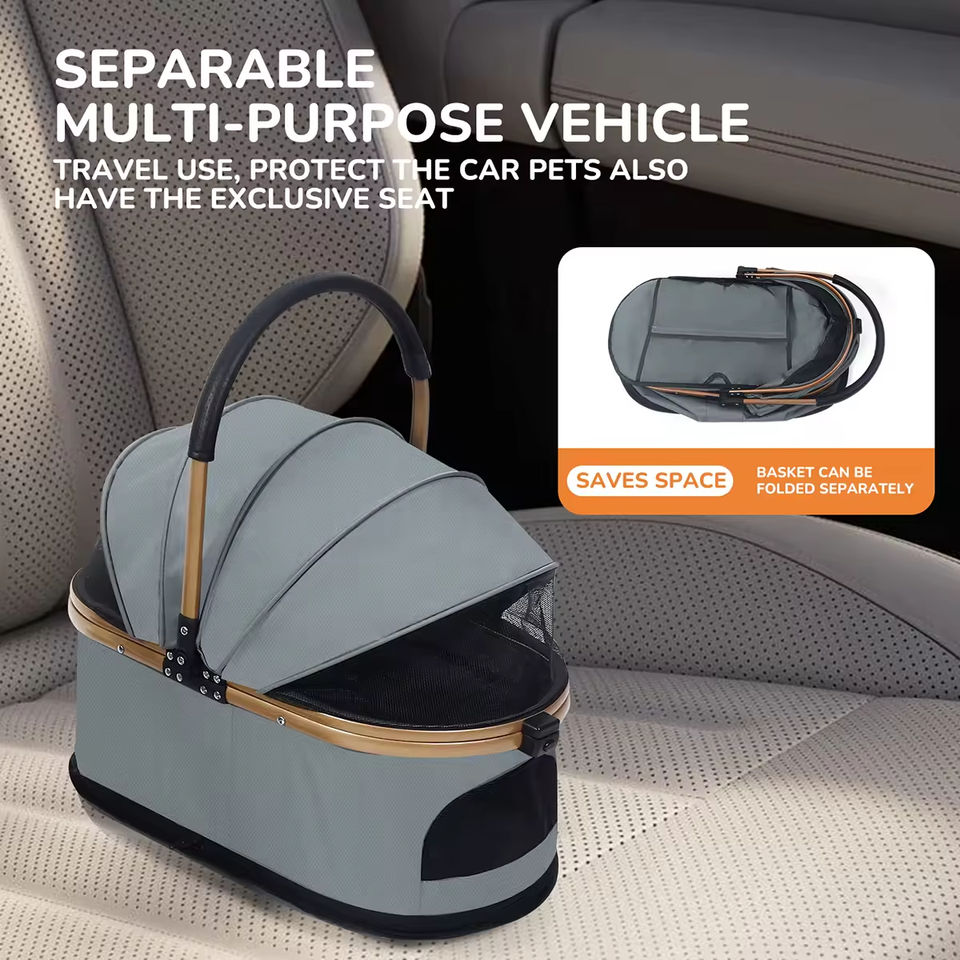 Passeggino pieghevole a 4 ruote di lusso per animali domestici con supporto rimovibile a 360 gradi per trasportini da viaggio e prodotti da viaggio