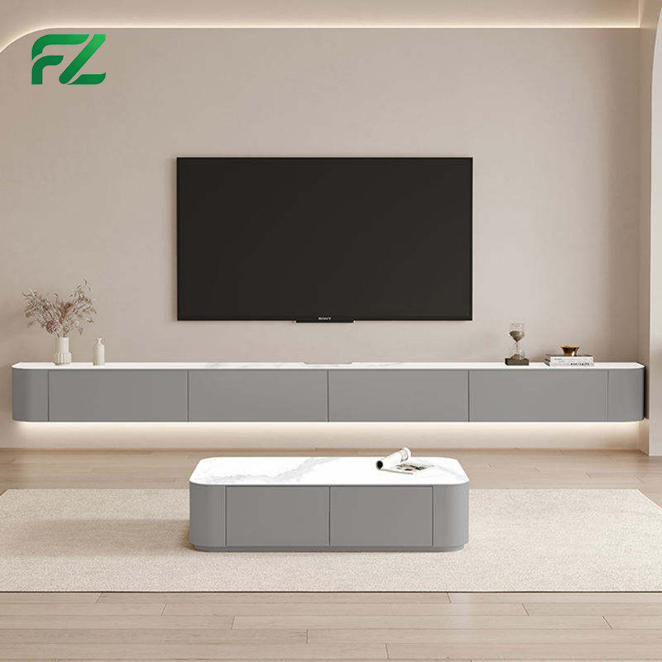 Mobile TV Sospeso in Alluminio Bianco Semplice da 80 Pollici con Ante Scorrevoli e Cassetti, Stile Lusso per Hotel 5 Stelle