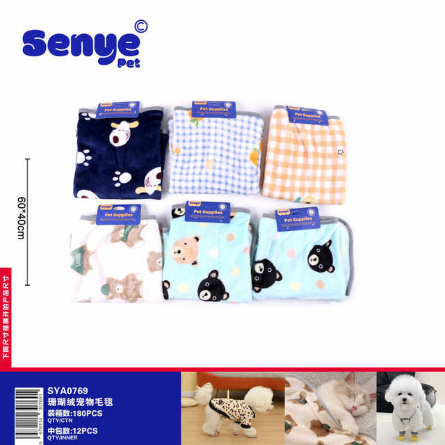 Luxury 60x40cm Flannel Pet Blanket Coral Fleece with Mixed Colors Soft Cozy for Cats Dogs Car Seat Use Animal Print Pattern
