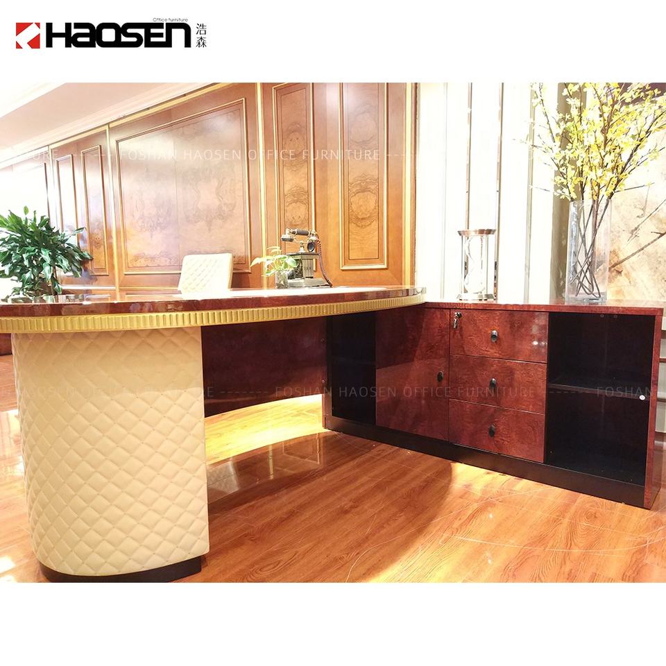 Stile:Ufficio scrivania a forma di L in legno di lusso