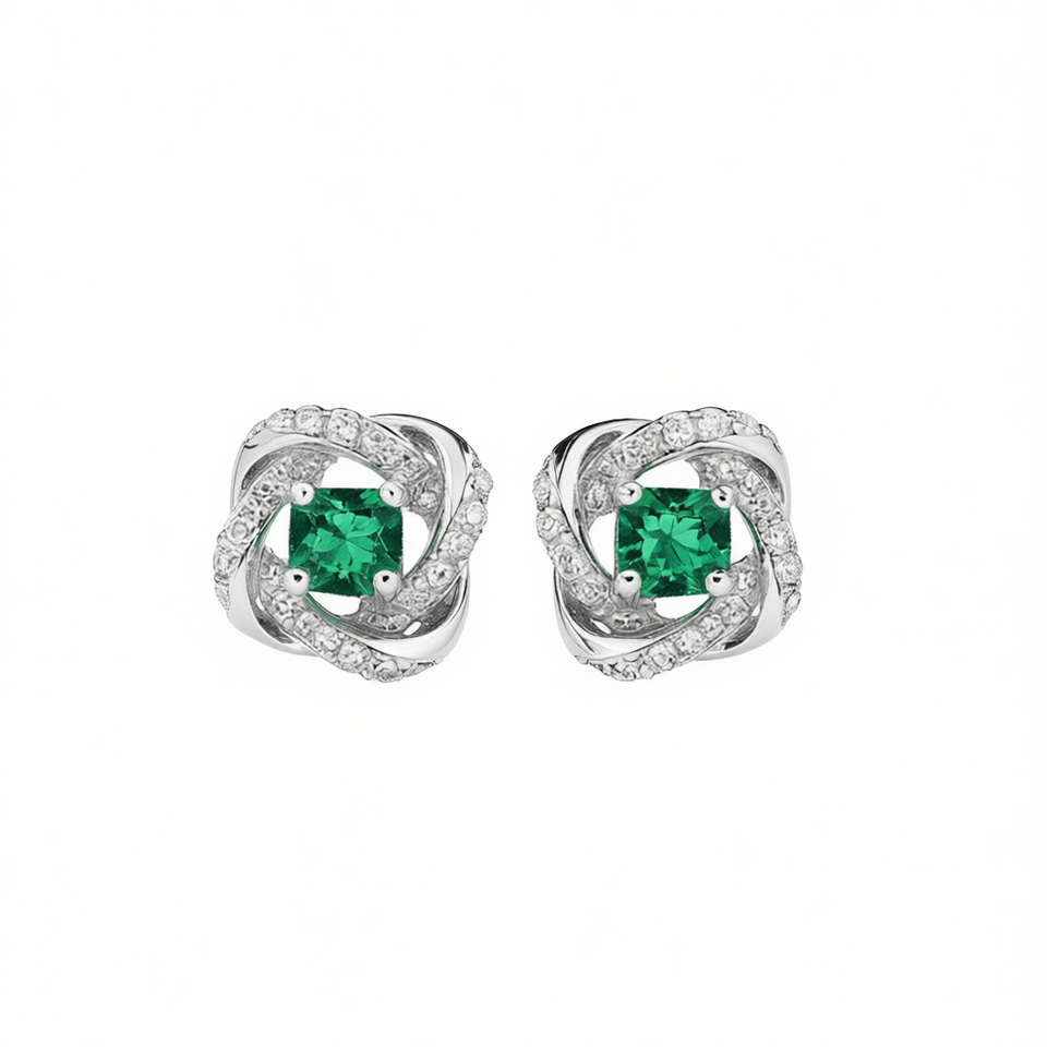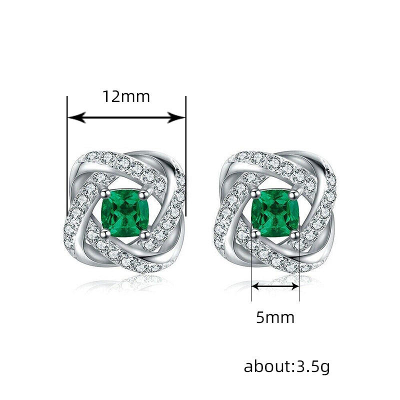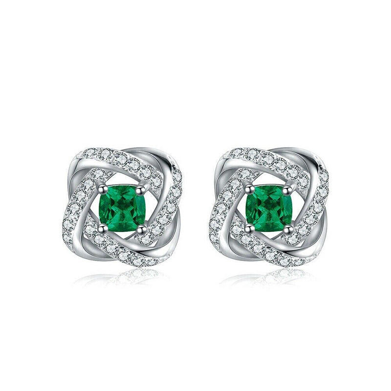 Luxury 925 Silver Emerald Stud Earrings Princess Cut Geometric Design For Women Everyday Wear Claw Setting Fine Jewelry