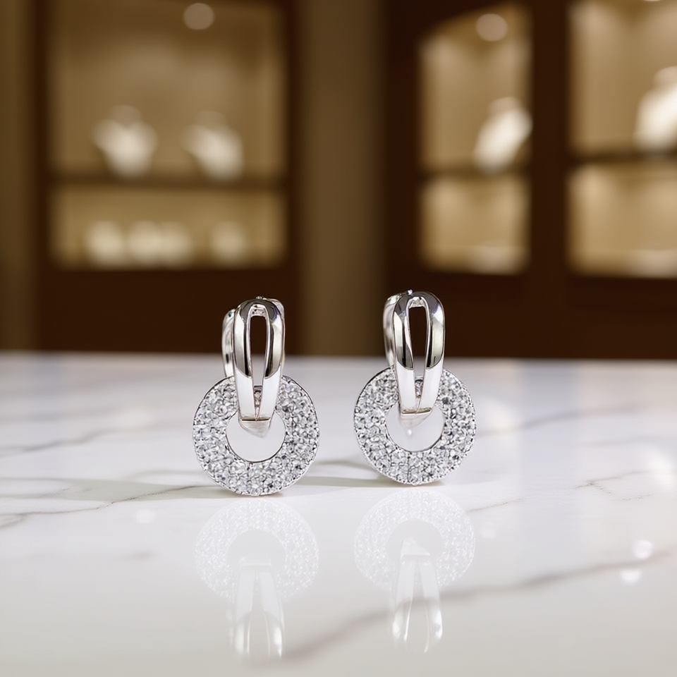 Luxury 925 Silver Huggie Earrings With Round Crystal Rhinestones Geometric Design For Women Party Jewelry Rhodium Plated