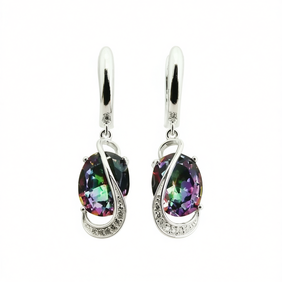 Luxury 925 Silver Rainbow Quartz Drop Earrings With Natural Crystal Claw Setting For Women Party Jewelry